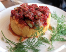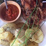 Заказывала индюшиную грудку на гриле, по вкусу сухая, не хватило соуса, а вот дополнительно заказать порцию соуса- нету такой услуги.