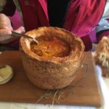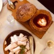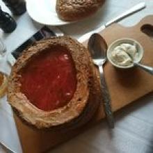 Хорошее заведение, но ожидалось большего. Хорошее обслуживание. Теперь о еде. Добротно и красиво , но как то все на 4. Борщ хоть и подаётся в хлебном горшочке, но это обычный борщь с выраженным вкусом свеклы. Хотя нужно отметить, что крышечка от горшочка вкусная...