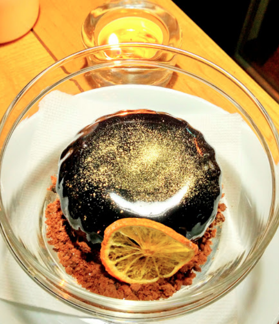 Вельми смачний гарячий шоколад та стейк лосося.