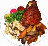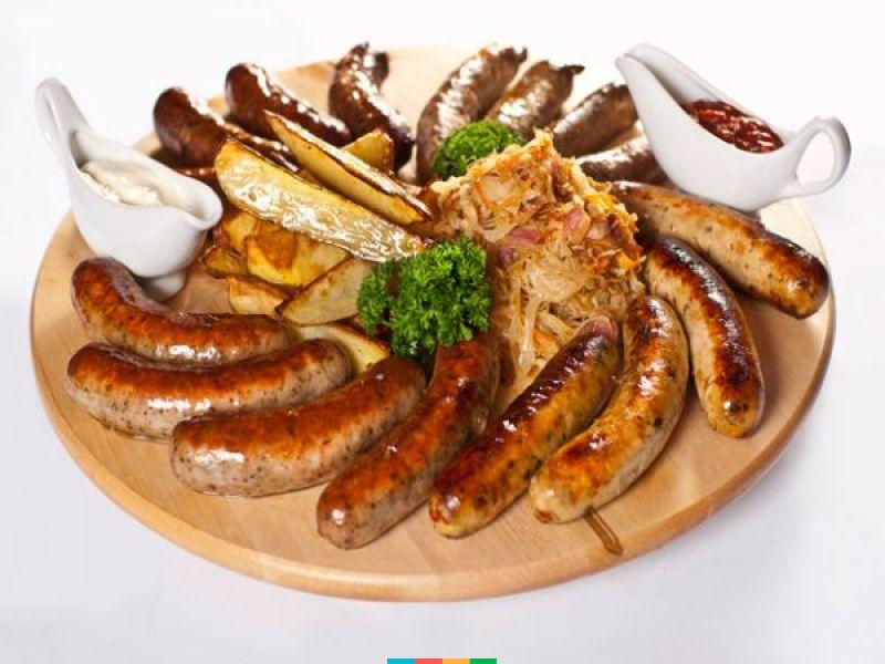 Серед фірмових блюд "Айс бан" німецька свинна рулька, м'ясо по- швабськи, асорті баварських ковбасок, салат з авокадо, .